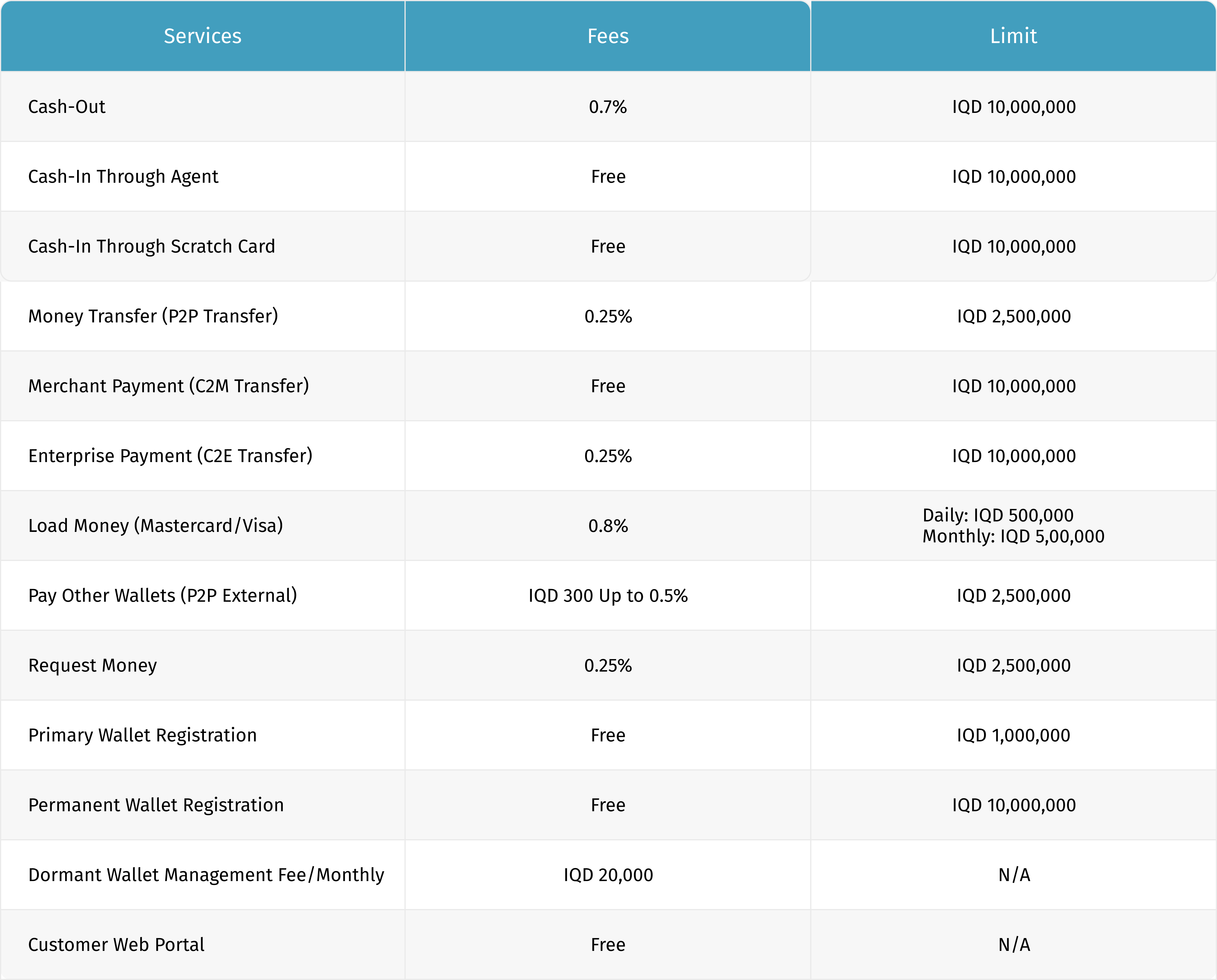 Fees And Limits